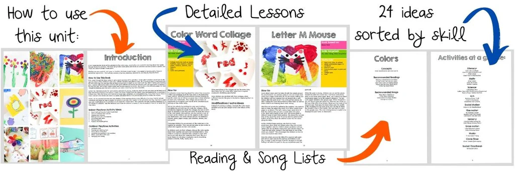 This colors preschool lesson plan unit includes activities across many learning areas.