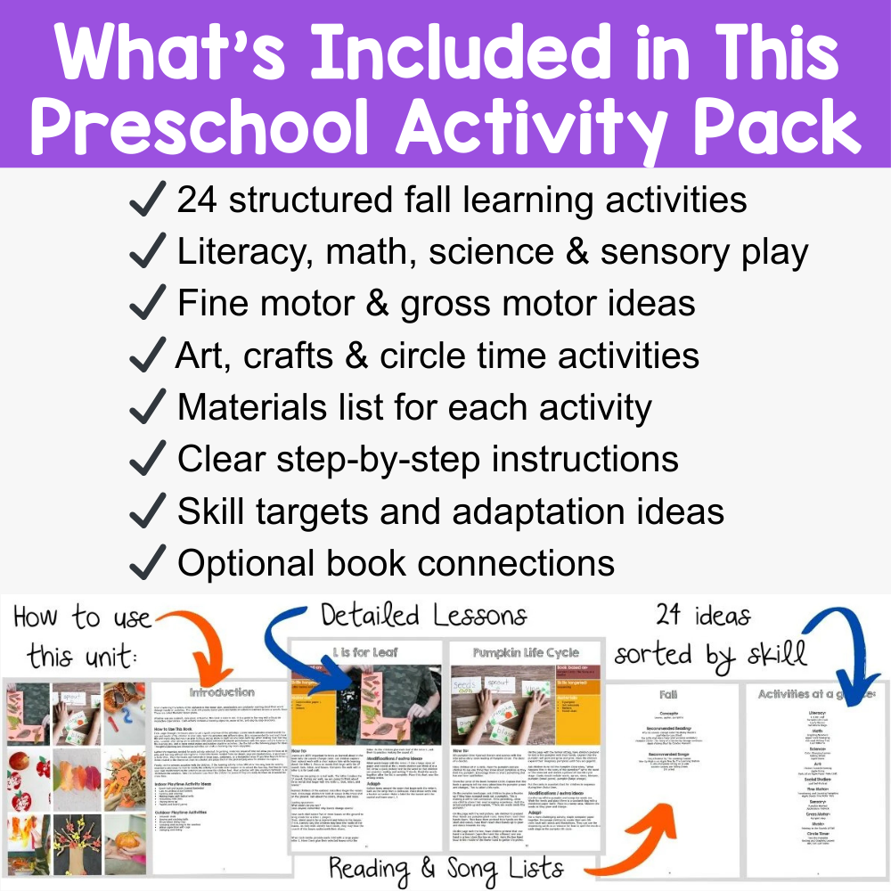 This fall preschool unit is designed to be flexible so teachers and parents can adapt the activities to their schedule.