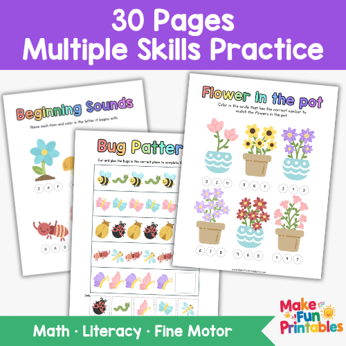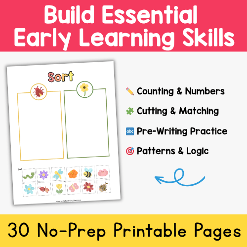 You’ll get 30+ printable worksheets covering a wide range of early learning skills: